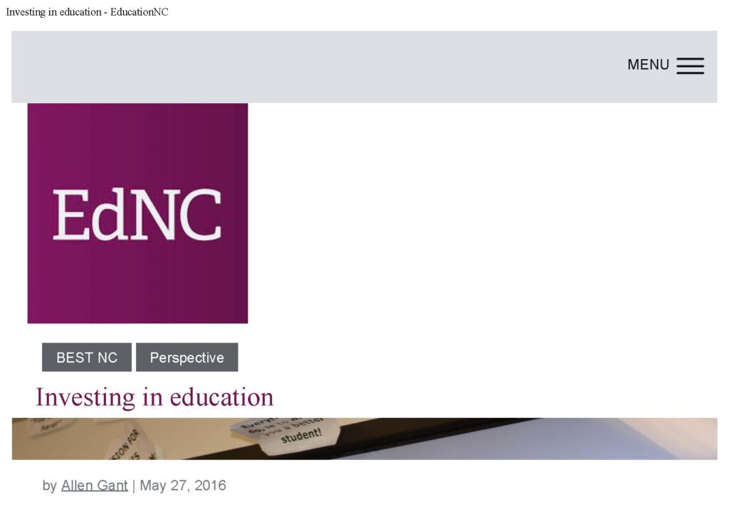 Investing in education is the right move for legislature- EdNC- Allen E. Gant Jr.