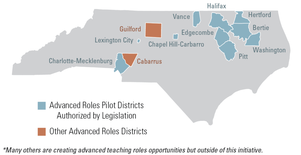 Spotlight On: Advanced Teaching Roles Initiative In 2016, North Carolina created the Advanced Teaching Roles Initiative. This legislation establishes a school leadership re-design model that empowers districts and educators to design new teaching roles that provide advancement opportunities, improved professional development, and greater support for student achievement. Advanced Teaching Roles enables highly-effective teachers to advance their careers, extend their positive impact on student achievement, and increase their compensation. The best part: they get to stay in the classroom! In effective models, developing teachers also benefit by having access to real-time professional development, relieving some of the pressures of principals who are traditionally the primary source of instructional leadership in the school. Today, ten districts are taking part in the Advanced Roles Initiative. Success by Design Program Created in 2013 and inspired by lessons learned from the Opportunity Culture model in Project LIFT schools, Success by Design is an official Advanced Roles program in Charlotte-Mecklenburg Schools (CMS). This approach is being phased in strategically over time. During the 2018-19 school year, Success by Design was implemented in 50 schools. Success by Design advanced roles teachers can earn up to $20,000 on top of their base salary, while increasing their impact on student achievement. Early results from the CMS program suggest that this model helps the district recruit and retain top talent, resulting in significant student achievement gains. During the 2017-18 school year, 58% of Success by Design schools exceeded growth, compared with 27% of all schools statewide. Also, a recent study published by the CALDER Center finds that students’ academic gains increased when taught by advanced roles teachers, with significant achievement gains in math. For more information visit www.BEST-NC.org/advancedroles.